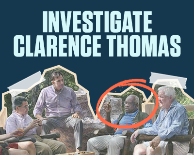We have breaking news. This morning, ProPublica dropped a bombshell piece on Clarence Thomas, meticulously outlining the lavish gifts and trips he accepted but never disclosed from GOP mega donor, Harlan Crow. We’re talking private jet rides, cruises on luxury yachts, all-expenses paid trips to Indonesia and New Zealand. He even stayed at Crow’s lakeside resort free of charge, complete with staff on hand to make milkshakes. While Thomas enjoyed all these extravagant gifts, he was in the company of heavy hitting conservative power brokers and big donors. People like Leonard Leo, a longtime Federalist Society leader and GOP mega donor, and Mark Paoletta, former General Counsel of the Office of Management and Budget in the Trump administration. And that’s just who we know about. Want the cherry on top? While he was jet-setting and buddying up to conservative activists, he disclosed none of this to the public. Time and time again, the Supreme Court has shown us that when they are left to police themselves, no one is held accountable. And it’s not just Clarence Thomas or some one-off incident. Justice Alito has taken dinners with conservative anti-abortion activists, allegedly leaking reproductive health decisions. Brett Kavanaugh was hobnobbing with conservative activists at a Christmas party last year. And Ginni Thomas, Clarence’s wife, was texting with Mark Meadows during the insurrection. Thanks for all that you do. Sami and Chloe