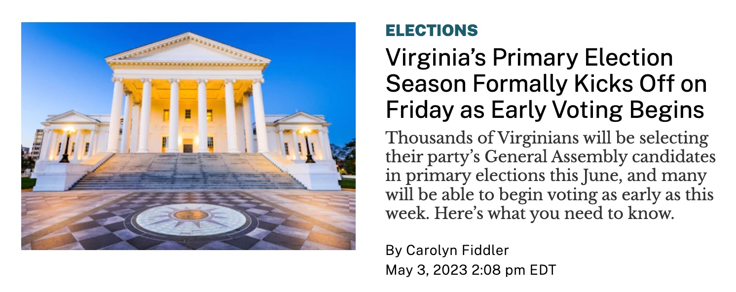We’re coming up on some of the most important state elections of 2023: the Virginia state primaries.