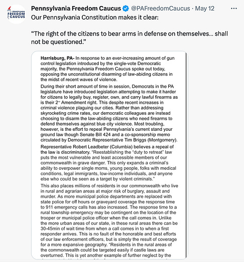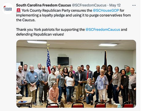 Friends, You’ve heard about it in the news. The Biden Administration recently attempted to implement a truly absurd rule that would increase fees on responsible homeowners to subsidize those with bad credit. As if hardworking families haven’t suffered enough in Joe Biden’s America, now they wanted to punish those who take care of their credit and harm future mortgage borrowers. In response, all 11 State Freedom Caucuses signed a letter to FHFA Director Sandra Thompson demanding they rescind this terrible new regulation. It wasn’t long after that they did just that. Freedom Caucuses don’t just make a difference at the state level. When they raise their voices in opposition to the horrible policies of the Biden Admin, they get results for you at the federal level too. Arizona: It’s no surprise, but Democrats are furious at the Arizona Freedom Caucus. The AZFC negotiated a budget with Democrat Governor Katie Hobbs that protected the state’s school choice program. Most Democrat lawmakers opposed the bill because they are owned by the teachers’ union. The budget, sponsored by AZFC Chairman Jake Hoffman, also delivered some serious tax relief - to the tune of $260 million. The state’s most toxic leftist columnist said Hobbs “got rolled” by the AZ Freedom Caucus. The AZ Freedom Caucus also led the way on House passage of HB 2545. The bill would prevent the state from enforcing any rules created by international public health entities like the progressive World Health Organization. The AZFC helped write the bill, pushed it to the House floor, and got it over the finish line. This is one example of our state freedom caucuses echoing support for the House Freedom Caucus in Washington. HFC member Rep. Andy Biggs of Arizona is the lead sponsor of HR 79, a bill that would require the United States to immediately withdraw from the WHO. The Network also is helping other state freedom caucuses pass similar legislation. South Carolina: The Palmetto State wrapped up its legislative session last week. You may recall that the year began with the RINO leadership in the House kicking the SC Freedom Caucus out of the GOP caucus for refusing to sign their loyalty pledge to never criticize a fellow Republican. Liberal Republicans were constantly undermining the good work of the SC Freedom Caucus throughout the session. But the good news is that the conservative grassroots is livid with the RINOs. The York County GOP became the sixth county Republican Party in SC to officially censure the House GOP leadership. This follows similar moves by Lexington, Anderson, Newberry, Pickens, and Greenville. Together, these counties represent over 1.4 million people. That’s almost 30 percent of South Carolina’s popular. And it represents a huge portion of the state’s Republican base. Pennsylvania: The PA Freedom Caucus is taking on two particularly egregious left-wing agendas in the Keystone State. Rather than address skyrocketing crime, Democrats in the legislature are attempting to repeal the state’s “Stand Your Ground” law, that allows you to legally defend yourself from being attacked. In addition, every PAFC member voted against funding Penn State University due to their hospital’s policy of providing sex changes to children. More on that to come this week. Louisiana: The Bayou State’s legislature just began its session and things are already heating up. In our last email, we talked about the madness that occurred at the Capitol after the LA Freedom Caucus led the charge to stop the grooming of children in schools and ban sex changes for minors. A lot of victories have already occurred, such as bills passed banning covid vaccine mandates forever, bumping up the penalties for fentanyl dealers, and requiring financial literacy courses in schools. More will be coming down the pipeline very soon so stay tuned. Idaho: Since the Idaho legislature is out of session, two of our IDFC members traveled to the southern border to witness the crisis unfold firsthand following the end of Title 42. Keep fighting, P.S. Your help is critical in building out a network of patriots and freedom fighters throughout our nation’s state capitols and in your home state. Please consider a contribution and join us as we work to advance the cause of liberty. State Freedom Caucus Network is free today. But if you enjoyed this post, you can tell State Freedom Caucus Network that their writing is valuable by pledging a future subscription. You won't be charged unless they enable payments. |