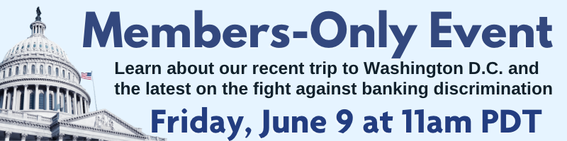 We have a lot of work ahead of us. While every office was supportive, each had different possible solutions. We’re now working with members of Senate Banking and the House Financial Services to increase scrutiny on the banks, reign in discriminatory regulation, and advance bipartisan legislation that would guarantee banking for our businesses.
