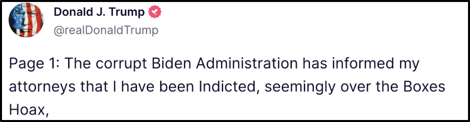 President Trump JUST ANNOUNCED he was FEDERALLY INDICTED by JOE BIDEN’S Department of Justice. See below: