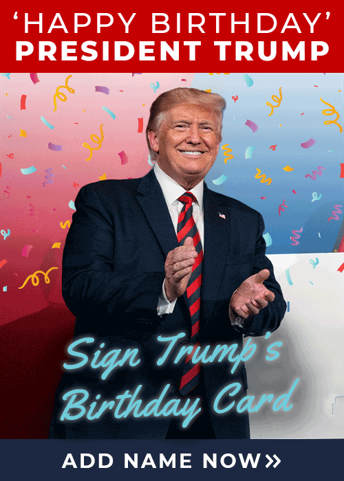 Friend, President Trump's Birthday is soon, so we want to do something special... With your help, we can make this the BEST BIRTHDAY EVER for President Trump! That’s why we need as MANY PATRIOTS AS POSSIBLE to sign a surprise Birthday Card. |