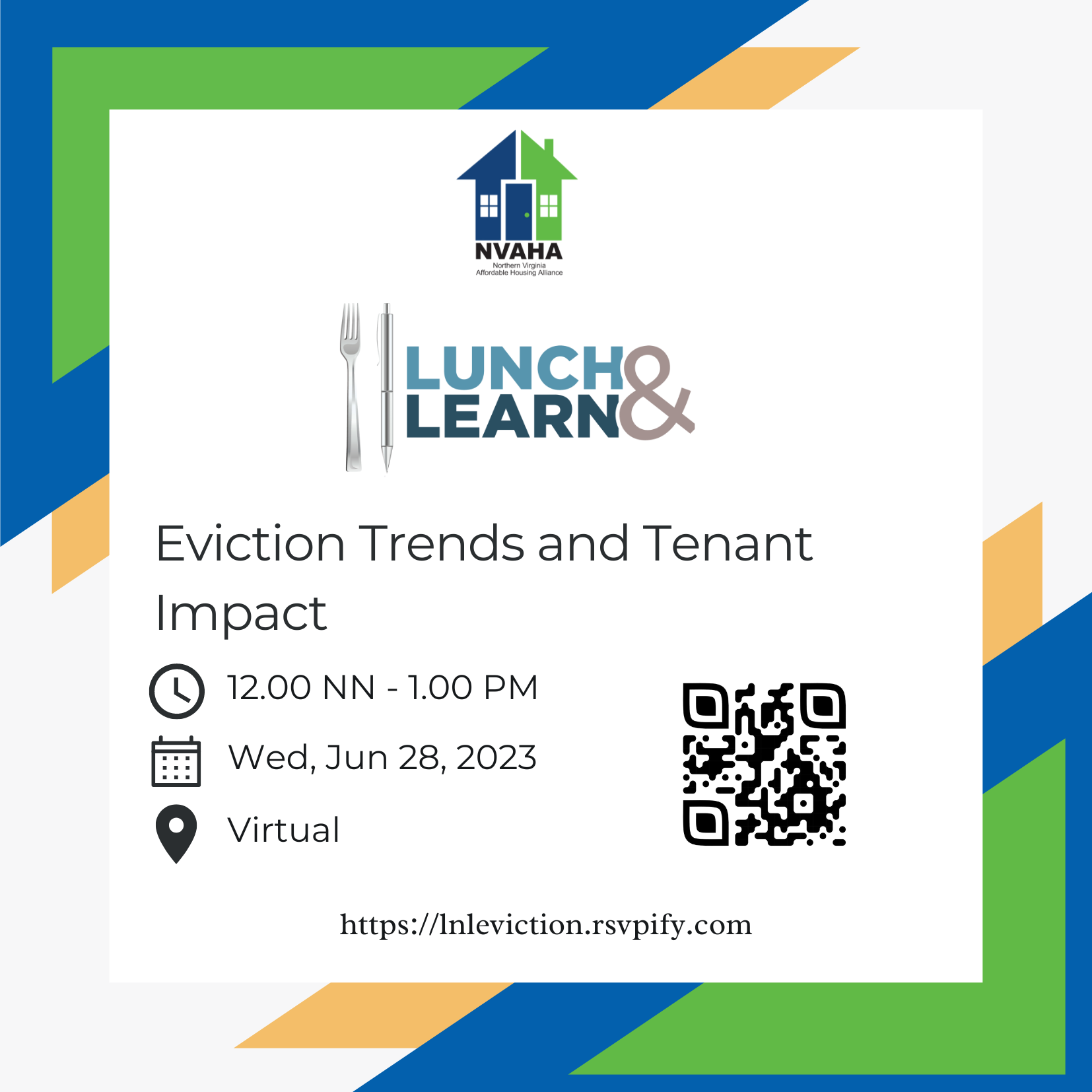 Please join us for a virtual Lunch & Learn session on Wednesday, June 28 from 12:00 PM to 1:00 PM to learn more about eviction trends in Northern Virginia and its impact on tenants. We are excited to feature tenant advocates in the field who will share their insights on current eviction judgements, potential solutions and resources.
