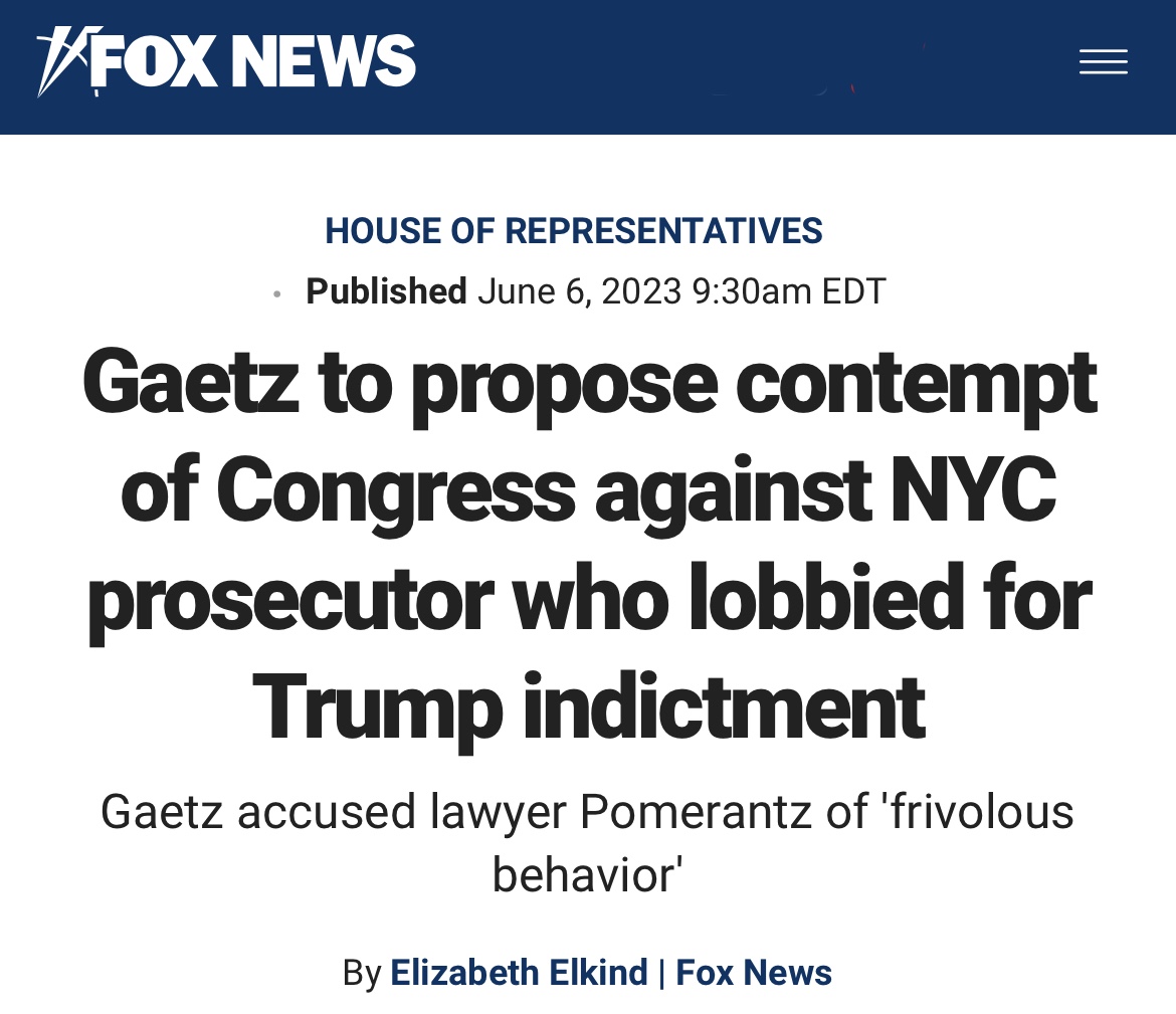 That’s why I introduced a resolution to hold Mr. Pomerantz in contempt of Congress due to his frivolous behavior. No one is above the law.