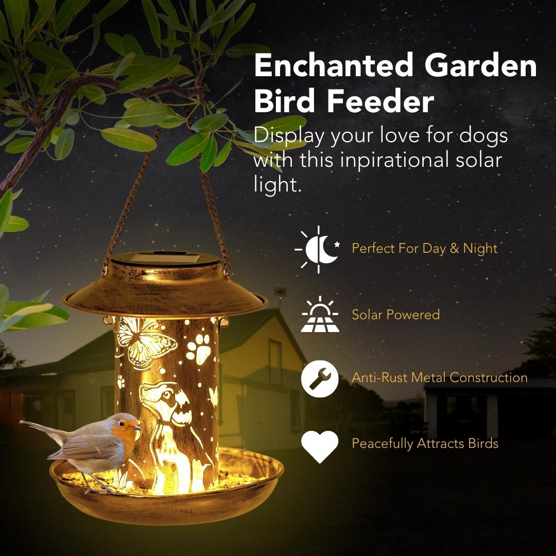 Here's the best part: we've added a solar light to the feeder, so you can enjoy its charming design day and night. With just one purchase, you're not only keeping the birds well-fed but also making a difference by supporting hungry shelter dogs. Don't miss out on this fantastic summer deal! Grab your Enchanted Garden Bird Feeder today and let the enchantment begin!