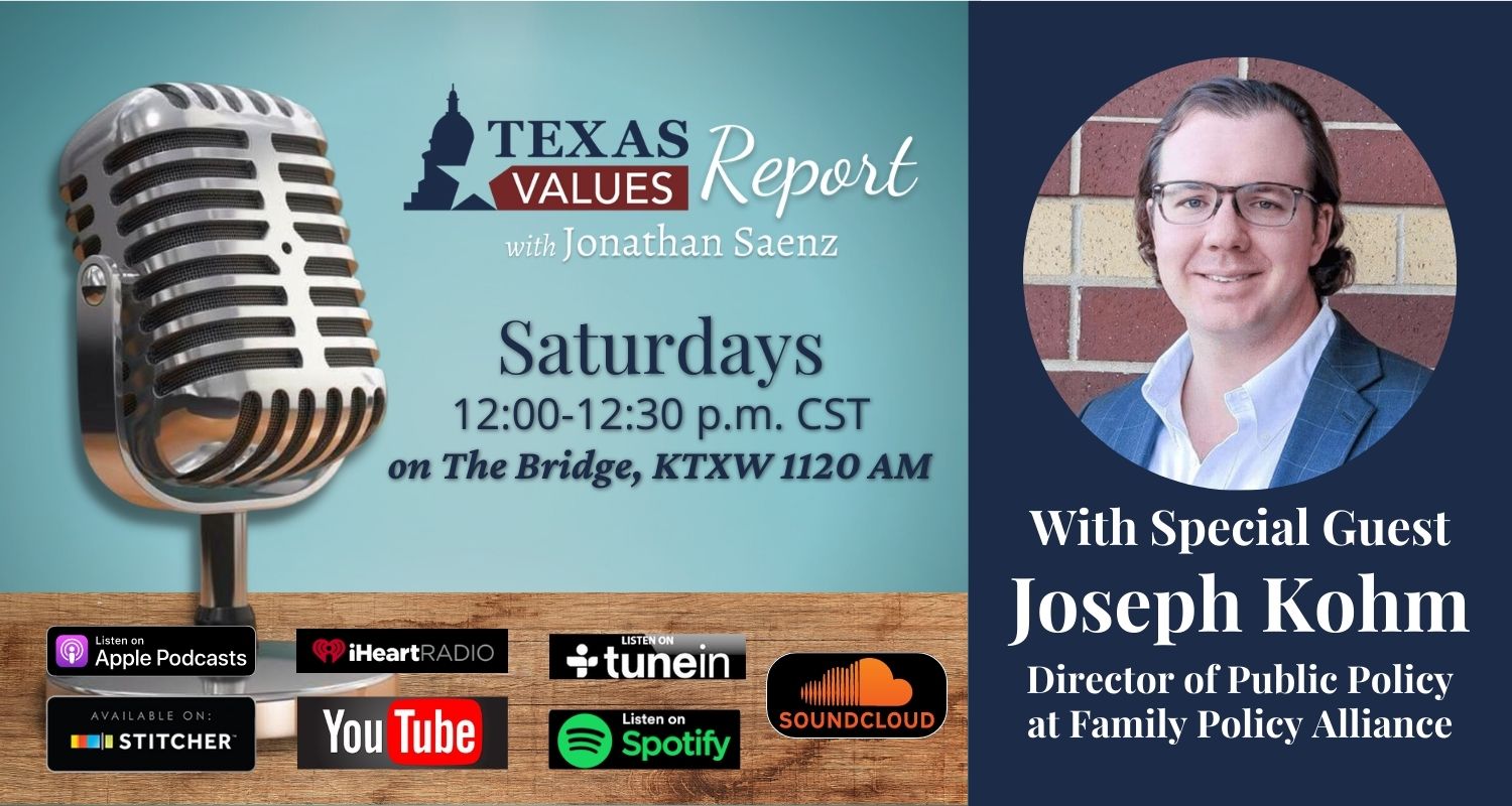 Catch the weekly Texas Values Report at any time, day or night, and on a variety of podcast sites: