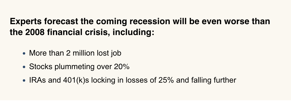 I remember how the Great Recession of 2008 wiped out $2.4 trillion from retirement funds.