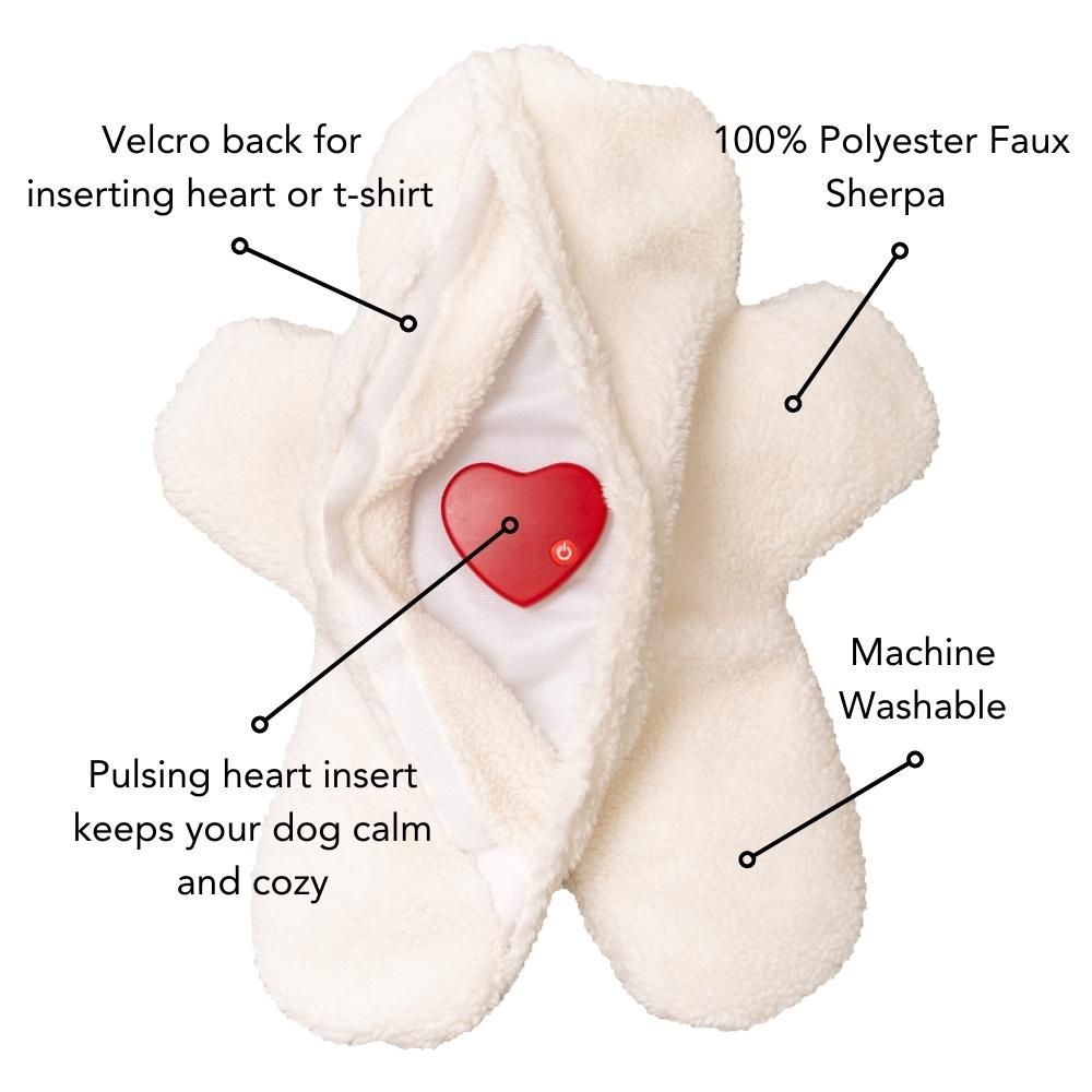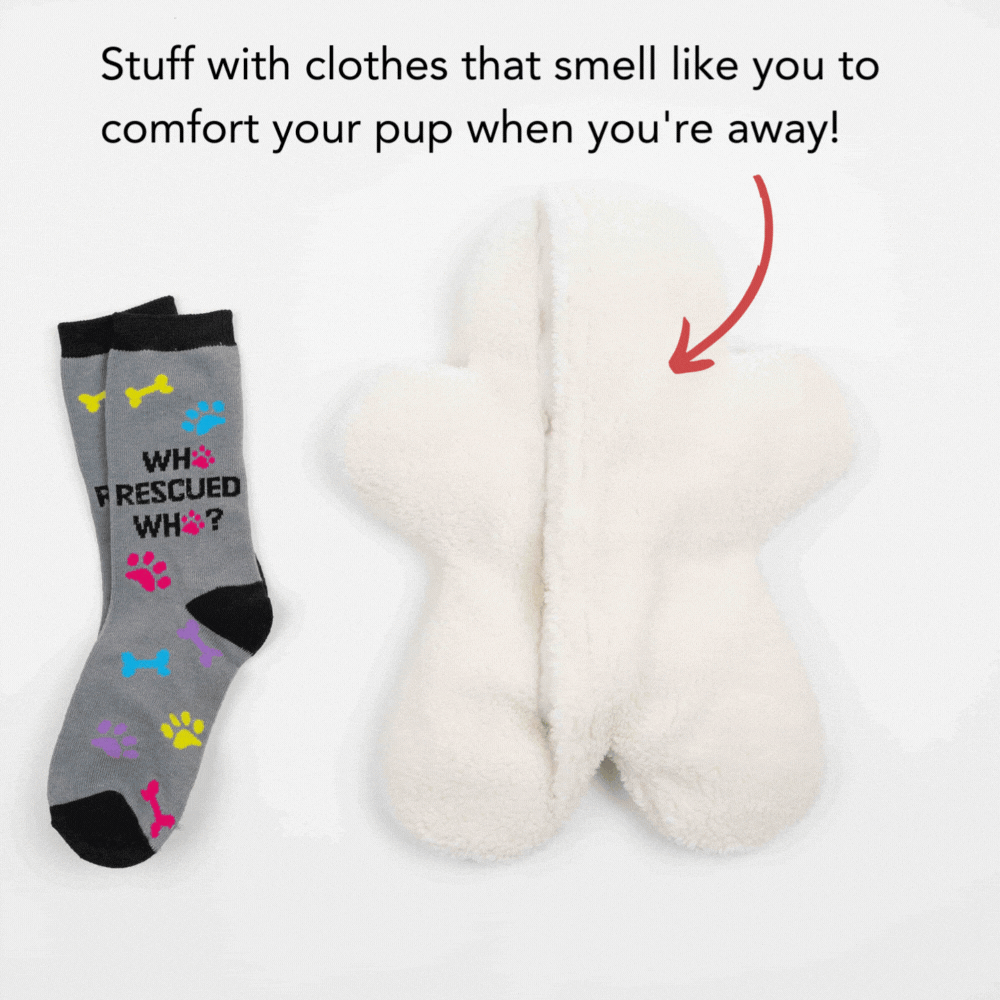 Your dog LOVES your scent. The canine sense of smell is very strong and helps inform dogs of the world around them. Your smell is one of the most comforting things to your pup. The Comfort Cuddler Buddy features a pouch into which you can insert something that smells like you. The Comfort Cuddler Buddy becomes a pillow for your pup to relax with and feel soothed by your scent.