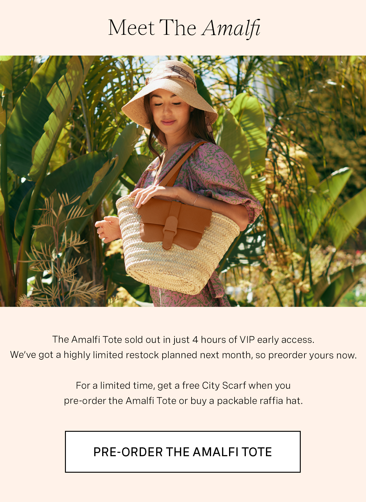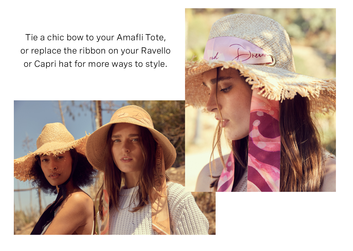 Gift With Purchase valid on purchase of the Amalfi Basket Tote, Capri Raffia Hat, or Ravello Raffia Hat. An eligible item must be added to cart to see Gift With Purchase options. Gift must be selected and added to cart before proceeding to checkout. Gifts cannot be exchanged or returned after purchase is completed. Gift selection may change at any time. If a selected Gift is unavailable, a Gift of the same value or higher will replace the selected Gift. Gift offer and selection may vary in stores. One gift per purchase. Offer is not valid on past purchases. Expires 6/23/23 9AM PT or while quantities last.