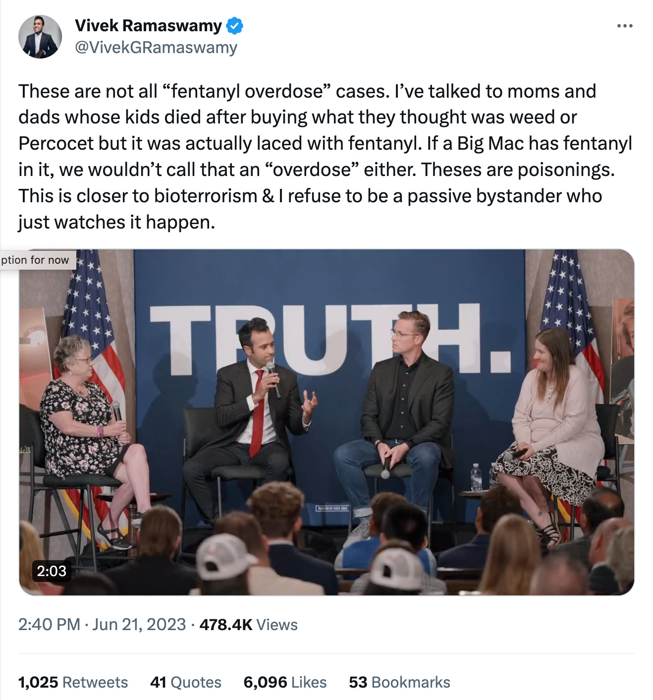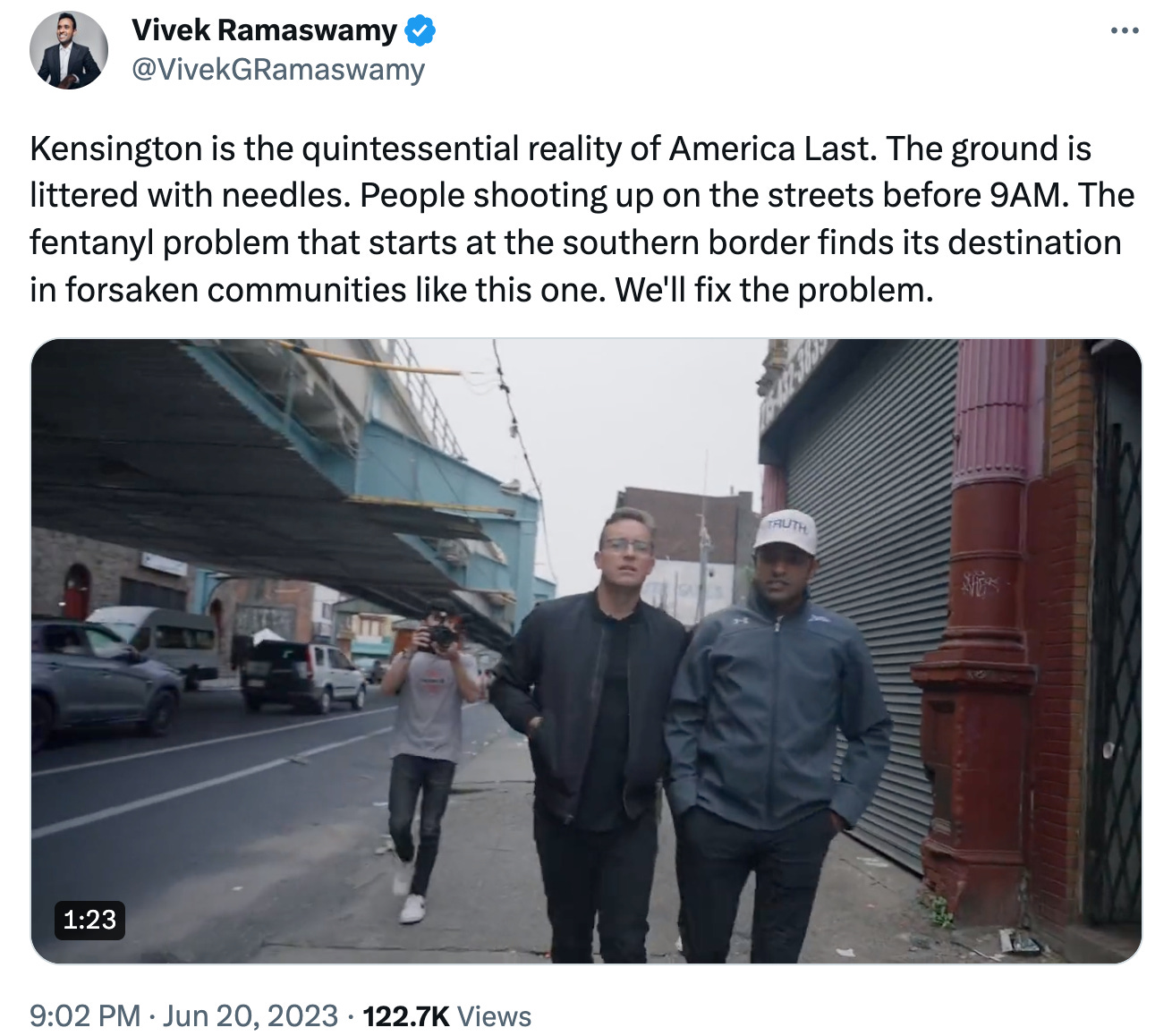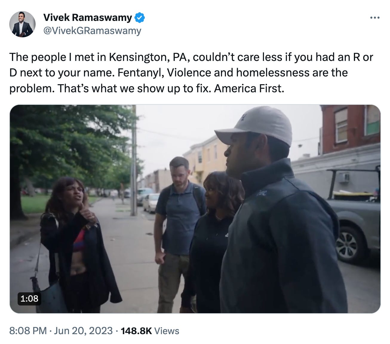 A Day With Vivek: From the Zombie-Land Streets of Kensington to the Benny Johnson Show Town HallHope is elusive but revival is possible...I knew what awaited me yet stepping foot into the open-air drug markets of Kensington alongside Presidential candidate Vivek Ramaswamy on Tuesday, I felt an overwhelming sense of disbelief. The hell that flourishes on those streets, where addiction and despair intertwine, is a stark reminder of the pressing issues plaguing our nation. As I navigated through the needle-ridden paths, I couldn't help but question the stark contrast between the grand ideals we proclaim and the haunting realities faced by those living in the depths of this community. In the company of Vivek, a candidate committed to transformative change, I embarked on a journey to witness firsthand the harrowing challenges that demand our attention and collective action. Amidst the desolation, however, I was heartened to encounter a group of human angels… Amidst the desolation, however, I was heartened to encounter a group of human angels who dedicate themselves to alleviating the suffering in Kensington. They descended into the depths of this neighborhood, their compassion shining through as they offered aid to those who couldn't find proper medical care or simply sat down to share a heartfelt prayer. Their presence was a glimmer of hope amidst the darkness, a reminder that even in the bleakest of circumstances, humanity's capacity for empathy and kindness prevails. ![]() Human angels descended into the depths to triage the needs of the forgotten and discarded among us As Vivek and I continued our journey, I was filled with a renewed sense of purpose. We have witnessed the hell that persists in Kensington, but we have also witnessed the resilience and compassion that thrive within this community. They may be the forgotten and discarded among us but their voices scream out for a cure, not mere triage. Our experience in Kensington served as a powerful reminder that the challenges we face as a nation demand more than temporary solutions or mere band-aids. The voices of those trapped in the cycle of addiction and despair call out for comprehensive change, for a shift that goes beyond mere triage. It was in this spirit that Vivek joined The Benny Johnson Show town hall that evening, where he passionately addressed the urgent need to return to the fundamental pillars that have shaped our nation: faith, family, and freedom. It became abundantly clear that the healing process for communities like Kensington requires not only a commitment to addressing immediate needs but also a profound reconnection with our core values. As we sat down with Vivek, the conversation shifted towards a vision of renewal, where faith, family, and freedom serve as guiding principles on our path to recovery and restoration. During the town hall, Vivek stood alongside two courageous mothers, Laura Shanafelter and Erika Shambaugh, who have tragically lost children to fentanyl poisoning. Laura advocates tirelessly for change through Tyler's Law, a bill named after her son, aimed at addressing the root causes of the opioid crisis and enforcing stricter penalties. Despite her unwavering efforts, the law still awaits passage, highlighting the challenges we face. Erika's heartbreaking story of losing two sons underscores the urgent need for comprehensive action. Their presence on the town hall stage showcased their strength and determination, reminding us that real lives and families are affected. Vivek listened intently, and their stories deepened his resolve to confront this crisis head-on. Their collective call for justice and change serves as a rallying cry to push for tangible solutions and put an end to the devastating toll of fentanyl poisoning. As the town hall came to a close, the memory of Laura, Erika, Tyler, Joshua, and Austin lingered in the air, a constant reminder of the urgency and gravity of the work that lies ahead. Their voices, amplified through their stories, echoed the need for swift action, compassion, and unwavering commitment. It is their voices that must propel us forward, reminding us of the lives at stake and inspiring us to create a future where families are spared the unimaginable pain they have endured. ![]() Wrapped up a busy day at the Union League in downtown Philly with a lively and inspirational townhall with Vivek and Benny Johnson |
