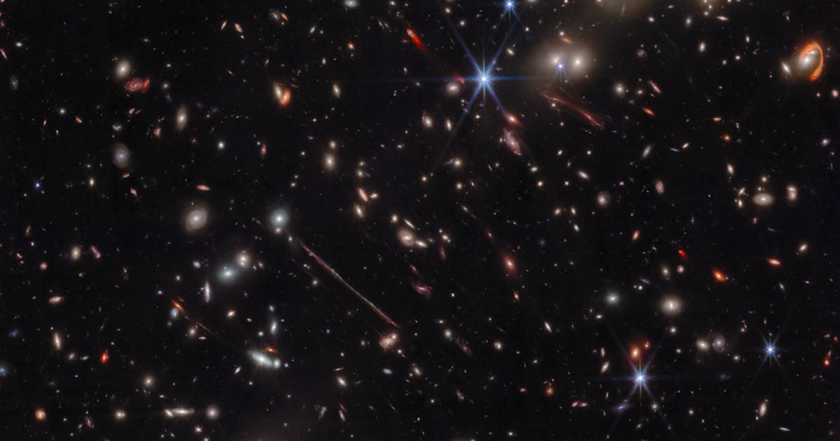 S67Stunning "El Gordo" Webb Telescope Image is a Bounty of Early Universe Science   In an image description NASA published on Wednesday, the space agency showcases a galaxy cluster and its vibrant science cornucopia. Astronomers can piggyback off galaxy clusters, like one called “El Gordo” (The Fat One), to peer deep into the distant universe. The hundreds of galaxies packed together wield a heavy concentration of mass, and if astronomers look towards a cluster on the hunt for sluggish or worm-like features, they might stumble upon light from the ancient past.