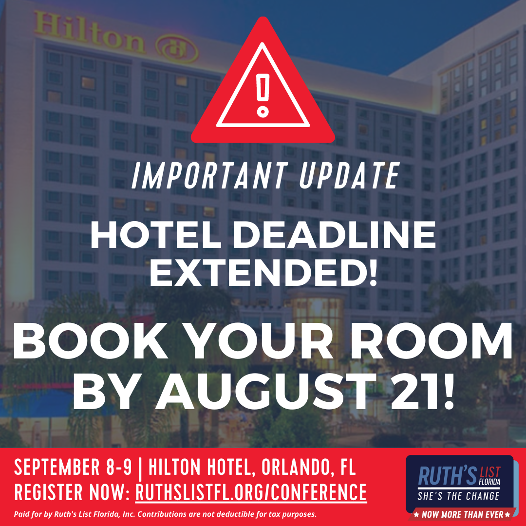 You've been hearing from us about Ruth’s List Florida’s Annual “She’s the Change” Conference for months, and we're getting close to our registration deadline. Join us on September 8-9 in Orlando for an exciting program filled with nspiring speakers, thought-provoking panel discussions, and interactive workshops. You will have the chance to connect with like-minded individuals who are passionate about advancing Democratic values and women's rights in Florida.