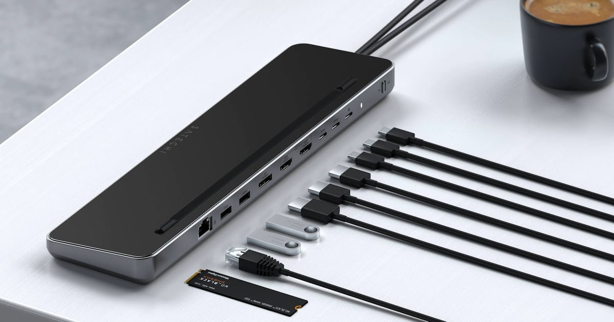 S62This USB-C Dock Fixes Your MacBook's Biggest Flaw   Satechi’s Dual Dock Stand has all the ports you need, along with passthrough charging and extra storage room.There’s no such thing as too many ports and Satechi knows it. The brand’s newest accessory is a Dual Dock Stand that expands your laptop’s capabilities with nine ports external monitor capabilities, and even passthrough charging.