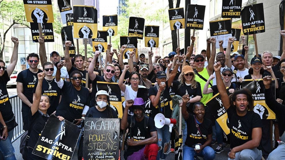 Collective bargaining in the aviation sector has also led to some big wage gains. Pilots at United Airlines, for instance, were able to secure a 40% raise over 4 years, while those at Delta achieved a 34% raise over 4 years and American Airlines pilots obtained a 40% bump. The combination of pilot shortages, strong demand for air travel, and COVID related changes in working conditions gave the unions strong leverage to negotiate historic deals for pilots. Similar dynamics have played out in many other sectors and labor unions have been noticeably active this year. Perhaps it’s because after decades of falling real wages, inflation and tight labor markets have driven workers to seek better? The Cornell University School of Industrial and Labor Relations has reported that more than 320,000 workers have participated in more than 230 strikes so far this year. (That compares to around 240,000 workers in around 420 strikes last year.) Not all of these disputes have been resolved… Think about what’s happening in Hollywood. In May, the Writers Guild of America (WGA) began a strike against the Alliance of Motion Picture and Television Producers (AMPTP), about compensation related to streaming services and the risks to writers emerging from generative artificial intelligence. Then in July, the Screen Actors Guild and American Federation of Television and Radio Artists (SAG-AFTRA) went on strike given their own dispute with AMPTP. This is the first time since 1960 that both writers and actors have simultaneously walked out. And while there has been some negotiation in both of these disputes, both the writers and actors seem to be digging in for a prolonged fight. SAG-AFTRA is even contemplating an additional strike against video game makers.