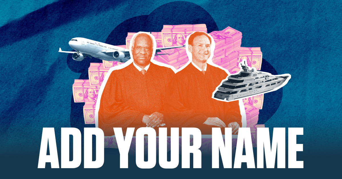 From accepting free luxury vacations to tuition payments to houses paid in full, the unethical behavior from Supreme Court justices is astounding—and that’s just what we know about. It’s time for Senate leadership to act. With a new Supreme Court session starting on October 2nd, we’re ready to let the justices know their days of acting with impunity are over. When we ask you to sign our petition, we need you to know that your signature won’t just live on some webpage or piece of paper. We’re planning to march up to Senators Dick Durbin and Chuck Schumer’s offices in October, petition signatures in hand, and demand they get to work curbing Supreme Court corruption. And we’re going to get specific about what we want Senate leadership to do. Senator Durbin must use his power as the chair of the Senate Judiciary Committee to initiate investigatory hearings into Justices Thomas and Alito's unethical and illegal conduct and to subpoena Harlan Crow and others. Senate Majority Leader Schumer must hold a full Senate vote on a Supreme Court code of ethics. Thanks for all that you do. Sami and Chloe |