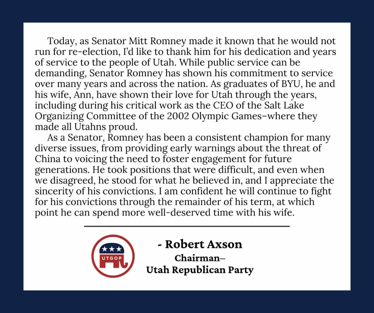 As a multi-county district, the Utah Republican Party is responsible for convening a special election caucus to elect his replacement. Per state law and our bylaws, the person chosen at this special election caucus will be appointed by the Governor to serve the remainder of Sen. Anderegg's term and face reelection in 2024 on the normal general election ballot.