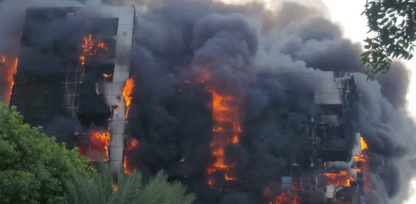 S55 S56Khartoum's burning tower: architects on the destruction of a city - and what it'll take to rebuild   Amira Osman: The 18-floor skyscraper was constructed in 2010, the first of two towers originally proposed by the local Alsunut Development Company. As architect Hassan Mahmoud told me, “It’s the headquarters of the Greater Nile Petroleum Company, the consortium that in 1997 led the exploration and export of oil in Sudan. Its glass sides and dramatic, curved bullet shape made it a distinctive building. The design was meant to be iconic, with the steel structure and glazing shaped to resemble a flame representing the oil blaze in the fields.” Another local architect, Arwa Ahmed, said: “Since its construction, there was hardly a photo, painting or a graphic design piece about Khartoum that did not include this building in its skyline. It had become a symbol of the region … I remember the day when I was an architectural student and our lecturer introduced us to the Alsunut project as a vision for new hope for the Sudan.” Akram Elkhalifa: The tower lies in the heart of Khartoum in the area known as Al-Mogran (The Meeting Points) as it’s located at the confluence of the White and the Blue Nile rivers. It was one of the few high-rise buildings in the city and reflected the stylistic direction taken by the modern architecture in Khartoum in that era.
