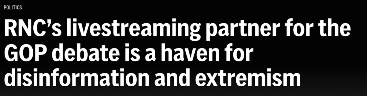 In livestreaming tonight’s debate on Rumble, the RNC is knowingly driving voters to a platform where hate and propaganda spread. As we saw in 2016 and in the aftermath of the 2020 election, bad information can spread beyond social media platforms like Rumble and into communities that don’t have access to news sources they can trust.