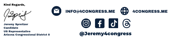 It’s Jeremy Spreitzer, I appreciate your support for my campaign. As some of you may know I have become an Independent Candidate and I want to emphasize that this is a pivotal moment that could determine our campaign's fate. Tomorrow, we're wrapping up this quarter and will publicly reveal our fundraising numbers. Remarkably, 100% of our donations originate from grassroots supporters like you. Your contribution today would have a profound impact, enabling us to make the necessary early investments for a successful run in the 2024 election. I understand that asking for support can be challenging, but given the significance of this moment, I sincerely request your contribution before our FEC deadline. Your support is truly vital. Please consider donating.