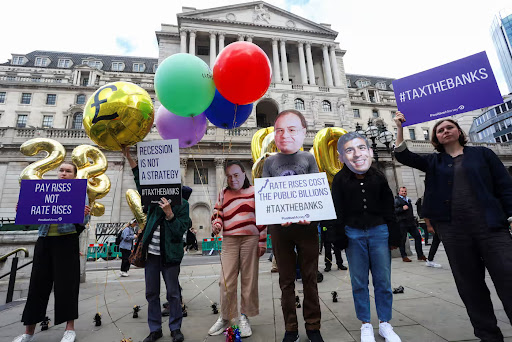 Since then John, we’ve been ramping up the pressure on greedy banks and corrupt politicians.. Over the summer, hundreds of people tuned into our webinar about the digital pound, and we joined thousands of festival goers at Glastonbury to spread the truth about our money and banking system. We also ran two protests outside the Bank of England to demand an end to relentless rate hikes and call for a windfall tax on bank profits.