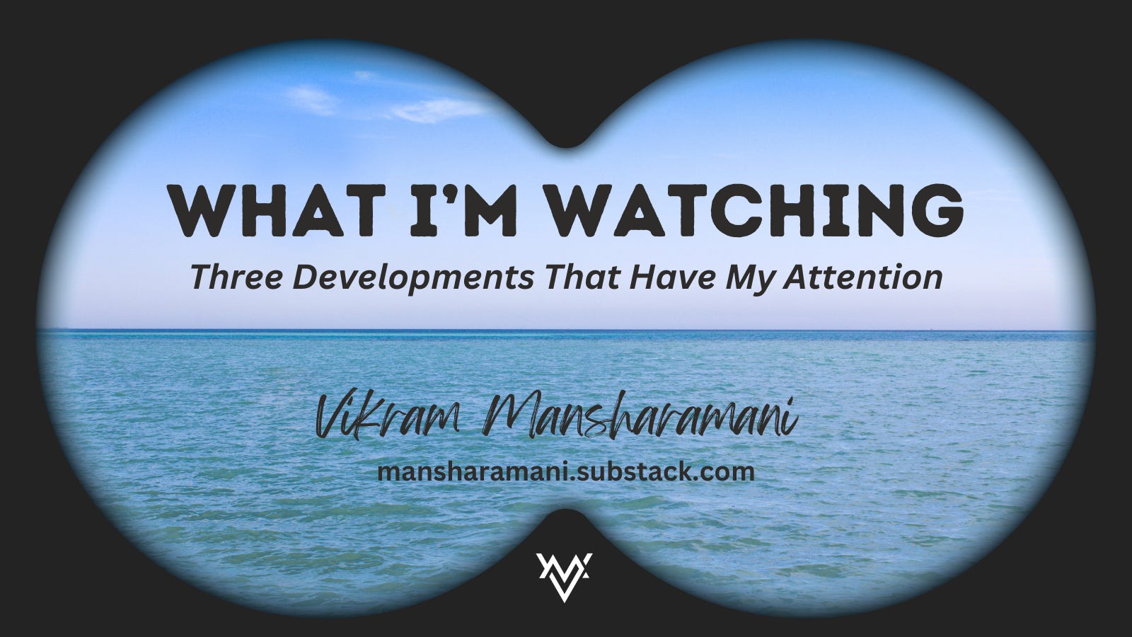 It’s in that spirit that I share what I’m watching today. The following three developments have caught my attention. The first two are obviously important and will almost certainly affect all of us; the third might be dismissed as a fringe topic, but it has my attention because it has the potential to be very consequential to our lives, depending upon how future events unfold. And of course, there are lots of other topics worthy of attention that I don’t profile here. Regardless, I offer the following discussion with a hope that it spurs you to think differently about the future.