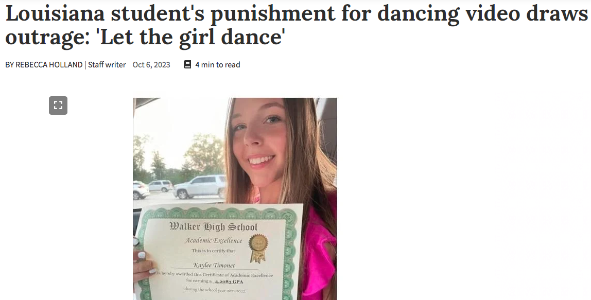 Kaylee’s future was threatened, and her reputation and standing at her school damaged, literally just because she had fun and danced with her female friends.
