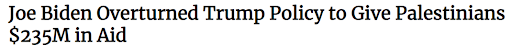 Biden has promised $235 million to Palestine with no remorse for innocent Israeli women and children.