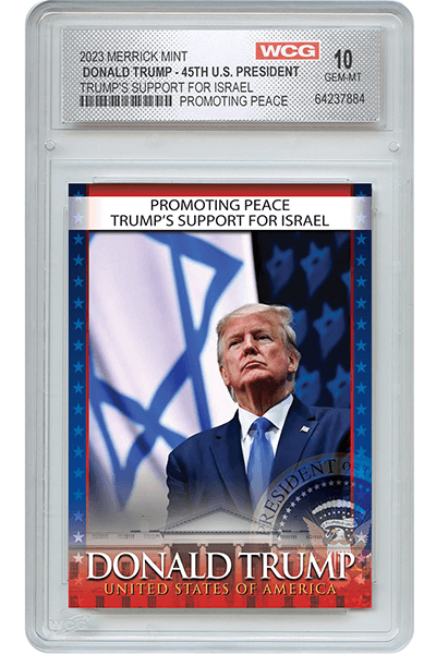 Show your unwavering support for Donald Trump's strength as a leader and our continued support and love for our allies and strong relationships that Trump work tirelessly to build, with this collectible limited edition trading card. |