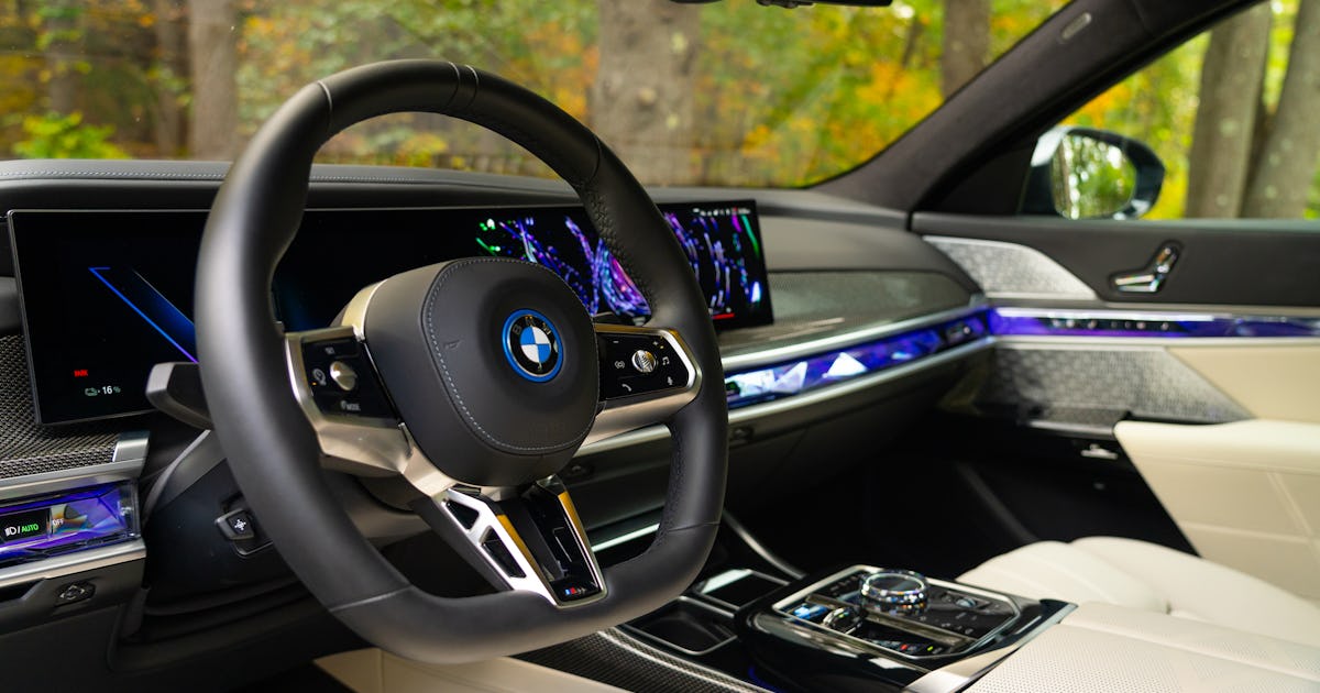 S65With an 8K Display, BMW's Pricey i7 EV Is a Tech Lover's Paradise   With oodles of power and a luxurious poise, plus jaw-dropping 8K theater screen, the i7 is a showcase for what's possible on four wheels. The in-seat massager is doing its thing to my things; the 1,965-watt, 39-speaker Bowers & Wilkins sound system is playing some ambient tunes with a lovely tone; and, was I not trying to be productive, I could summon a 31-inch, ultra-widescreen 8K display down from the ceiling upon which I could be watching any number of things through the integrated Amazon Fire TV functionality.