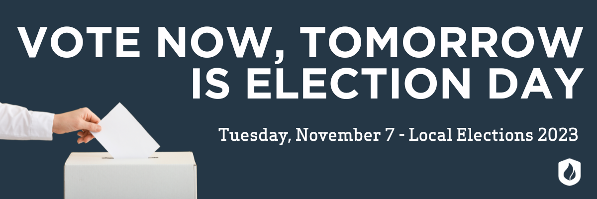 Tomorrow is Election Day (Tuesday, November 7)! Early voting will continue through today (Monday, November 6) - but check your polling location to confirm voting hours. If you haven't done so already, now is the time to make a plan to vote!
