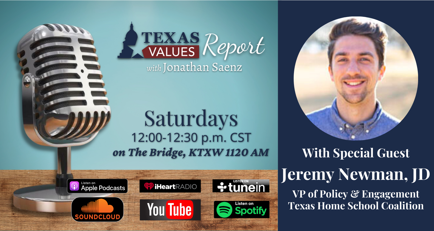 Catch the weekly Texas Values Report at any time, day or night, and on a variety of podcast sites: