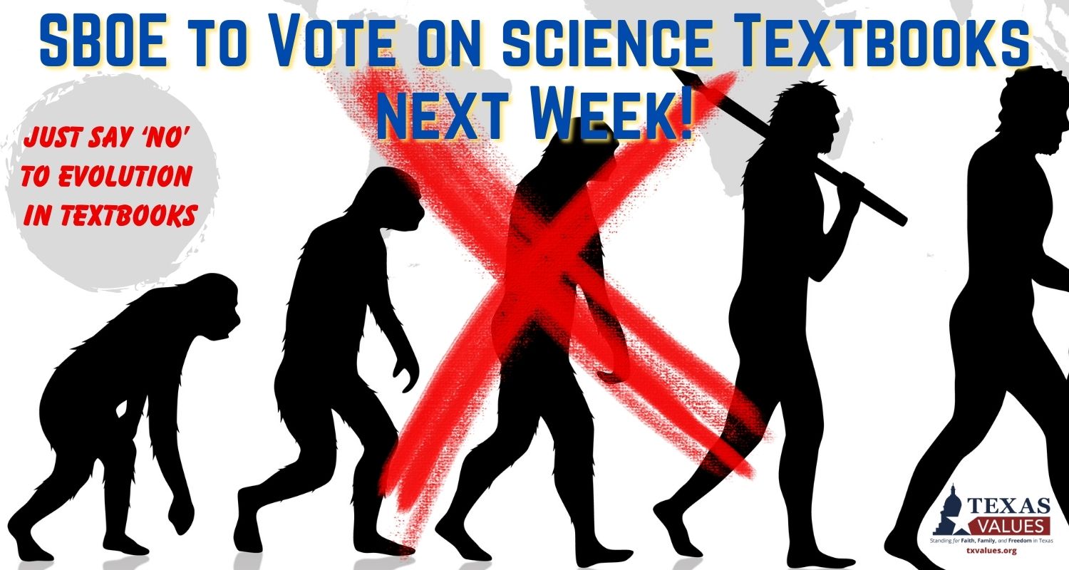 Tell the TX State Board of Education to Vote “No” on Textbooks that push 'Evolution-only' theories, that 'People Come from Monkeys', & LGBT themes. View the textbook materials here.