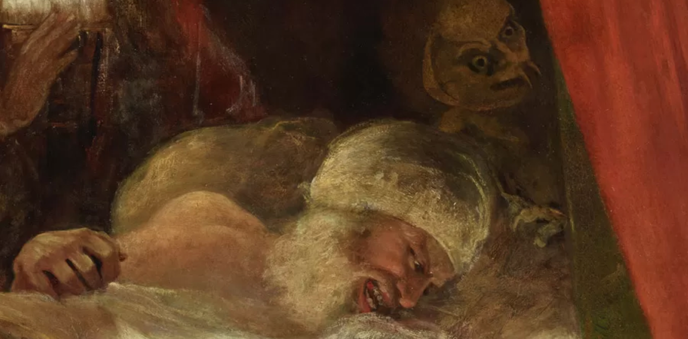 S42Restorers uncover demon in a 1789 painting - and reveal the decline of superstition in the Age of Reason   Recent news that restorers had uncovered the image of a Gothic-looking demon in a late work by Sir Joshua Reynolds (1723-1792) seems fitting for these long, dark evenings. The sinister face hovers above the head of a dying clergyman in The Death of Cardinal Beaufort, painted in 1789. Fake-or-Fortune-style reveals such as this, where Reynolds’s hollow-eyed fiend re-emerges, fanged and uncanny from the gloom of centuries of overpainting, are always popular with the public. But what are we to make of Reynolds’s devilish detail in his painting, and how does it fit into the larger story of demonic representation in the art and literature of the 18th century?