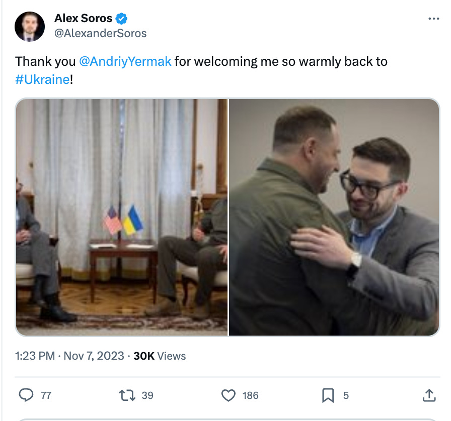 EXCLUSIVE: Soros and Biden Admin Officials Hold Private Meeting With Zelensky In UkraineThe Biden administration is colluding with the son of the Democrat Party's largest donor at a secret meeting with Ukrainian President Volodymyr Zelensky.Follow Laura Loomer on Rumble, and Locals here. While Congress is still debating whether or not to send additional funding to Ukraine, with a congressional funding deadline looming on November 17th, the Biden Administration has sent Transportation Secretary Pete Buttigieg to meet with Ukrainian President Volodymyr Zelensky in the city of Kyiv. In a bulletin posted to the Department of Transportation’s website, the stated goal of the meeting is for Buttigieg and Zelensky to discuss Ukraine’s economic recovery. That bulletin reads… “The discussions will focus on advancing Ukraine’s economic recovery and efforts to return Ukraine to economic self-sufficiency, including via supporting investments in transportation infrastructure and reforms that will support a return to private-sector led growth.” Also attending the meeting between Buttigieg and Zelensky is the son of billionaire Democrat mega-donor George Soros, Alex Soros. Why is Alex Soros meeting with Biden Transportation Secretary Pete Buttigieg and Ukrainian President Volodymyr Zelesky just eight days before a Congressional funding deadline in which House Republicans are working to limit additional aid to Ukraine amid threats of a potential government shutdown. This is the same scenario that led to former House Speaker Kevin McCarthy striking a deal with Democrats in September to pass a 45 day Continuing Resolution as opposed to a government shutdown, because McCarthy refused to remove funding for Ukraine in the budget. Alex Soros uploaded photos of his meeting in Kyiv to his Twitter page yesterday. Those photos can be seen in the Twitter post below… Sources have confirmed to me that Soros and Pete Buttigieg, a Biden Administration official, met while they were in Kyiv, but of course, neither of them posted photos of their meeting because, after all, why would the Biden Administration want the American people to know that they sent one of their officials to meet with a billionaire Democrat mega-donor just eight days prior to a congressional funding deadline debate centered around a discrepancy over funding for Ukraine. It would appear that as Congress is debating sending additional funds to Ukraine, that the vast and wealthy Democrat donor class is flexing their muscles on the world stage, eager to ensure that billions of American taxpayer dollars continue to pour into the corrupt coffers of Ukrainian government, where they are easily dispersed to the political classes around the world who have used Ukraine as a dumping ground for their corruption for decades. Is it a coincidence that Ukraine was the Nation in which Joe Biden’s son, Hunter Biden, held a board position with a state-affiliated energy company called Burisma, a position for which he had zero qualifications or experience for? Ukraine has been a hub for political classes of all kinds to outsource their corruption for years. Why would Alex Soros be meeting with Andriy Yermak, the Head of the Office of the President of Ukraine? Now, with attention shifting to the very real conflict happening in Israel, the Biden donor class, along with his own Administration, is pulling out all of the stops to ensure that aid to Ukraine continues to flow, even with more pressing matters occurring on the world stage. The blind commitment the Biden Administration has shown to Ukraine, even as our own Nation crumbles, and our standing throughout the world diminishes, only highlights the true focus of their policies… self-enrichment. In an article about the looming congressional funding deadline, NBC News reported that Congressional Democrats are attempting to tie-in funding for Ukraine with additional funding for border security along the United States Southern Border. Could Soros’ visit with Buttigieg and Zelenksy be part of the ongoing negotiations? Remember… the Soros family is the primary funders of Democrats throughout Congress. The Soros Family’s ability to sway votes cannot be understated. Follow Laura Loomer on Rumble, and Locals here. Watch Laura Loomer’s show “Loomer Unleashed” LIVE on Rumble every Tuesday and Thursday at 8 pm ET. You're currently a free subscriber to LOOMER UNLEASHED. For the full experience, upgrade your subscription. |