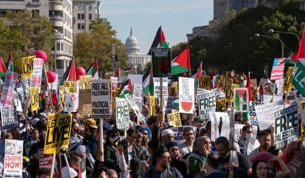 America & Israel continue to violate international law with impunity, enabled by their longstanding refusal to accept the jurisdiction of international bodies like the International Criminal Court. Responding to the complicity shared by Tel Aviv and Washington, voices have risen in dissent across every part of the United States. From the East…In the nation’s capital, activists marched by the hundreds of thousands on November 4. Over 250 organizations came together to plan the event, which was the country’s largest gathering ever among pro-Palestinian voices. One organizer, Layan Fuleihan from The People’s Forum, said, “[It] felt like this was…a turning point in the struggle for Palestine.” Events appear to be proving her right. This week, 150 more blockaded the headquarters of the Democratic National Committee, highlighting the unfortunate—and also revealing—fact that neither of the corporate political parties in Washington supports international human rights, or the global consensus favoring a long overdue cease-fire. The DNC’s role reinforcing the Republican position effectively disenfranchises American voters who support human rights, casting a shadow on Washington’s farcical claim to promote democracy abroad—or even to practice it here at home. Despite organizing a non-violent action, 90 participants were injured by police, offering a further indication of the state of what passes for “democracy” in our country. The Guardian reports that: