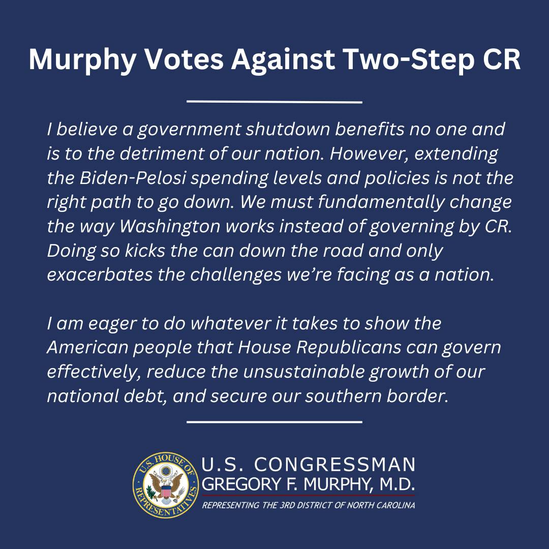 My Statement on the Two-Step Continuing Resolution