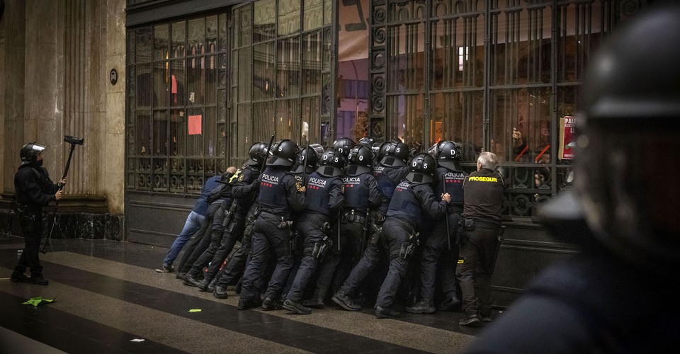 S22 S23Photos of the Week:   A pogo-stick-record attempt in Pennsylvania, airport-fauna management in Brazil, lenticular clouds above Corsica, continued cleanup from Hurricane Otis in Acapulco, a heat wave in Brazil, holiday light shows in England, continued Israeli air strikes in Gaza, and much more Police officers work to contain protesters trying to enter the train station in Barcelona, Spain, on November 11, 2023. Riot police briefly clashed with about 2,000 pro-Palestinian protesters who stormed and occupied a commuter train station. #