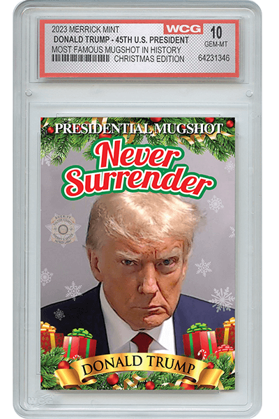 His mugshot quickly became the "Most Famous Mugshot in History" and this trading card became the #1 selling Trump Mugshot collectible.