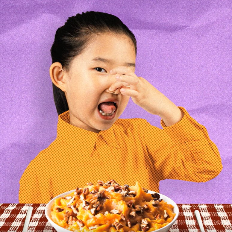 This one goes out to all the parents whose kids are going to make dramatic faces when they sit down to the traditional Thanksgiving feast on Thursday. Lauren Davidson writes: “For most of my childhood, I subsisted on buttered noodles, chicken fingers, and plain cheese pizza. On Thanksgiving, when presented with steaming dishes full of roast turkey, stuffing, and green bean casserole, I chowed down on rolls and waited for dessert so I could enjoy a slice of the chocolate pie my mother makes only once a year (I wouldn’t even try the pumpkin).” She adds: “Well, surprise, surprise — my kids are picky too. And Thanksgiving is no exception.” What follows is a rallying cry for the moms of kids who are gonna be stuffing themselves on rolls and rolls alone later this week. Kelly Faircloth, Executive Editor |