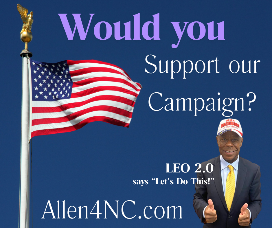 We are pleased to report that we have traveled the State of North Carolina over 60,000 miles since announcing for our candidacy in February. Over the months, Allen has been through numerous interviews on the state and national level, as well as having articles published by The Stream, The Blaze, American Greatness, to name just a few. He has garnered endorsements from county sheriffs to national figures and organizations. Most notably of late have been Veterans for Trump, Students for Trump/Chairman Ryan Fournier, and Oil & Gas Workers Association.