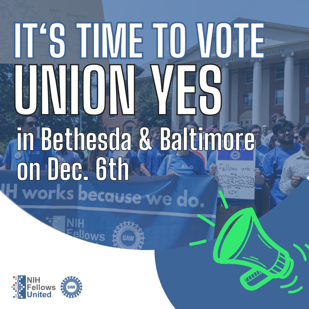 Fellows are the driving force of the groundbreaking research being done at the National Institutes of Health (NIH), but they currently lack enforceable rights in our workplace. NIH Fellows United-UAW is setting out to improve working conditions and join the growing movement of unionized scientists advocating for increased funding, fair visa and immigration policies, better science careers, and a society where the advances in health sciences we discover are shared equally by all.