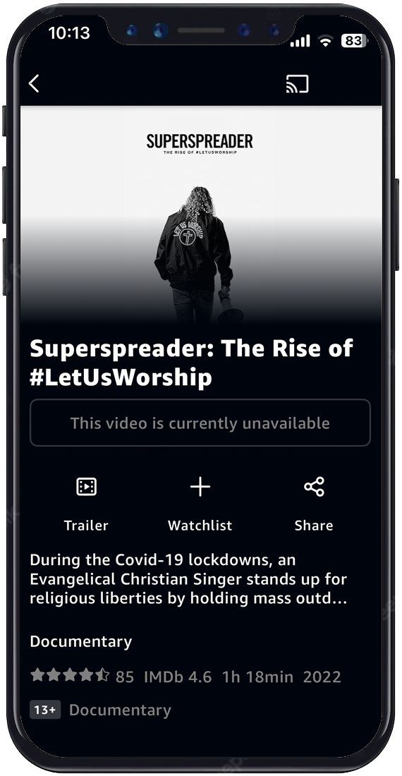 Have you tried to rent or buy SUPERSPREADER on Amazon recently? If so, you were met with the message, "This video is currently unavailable to watch in your location." Why was it removed? To be honest, we aren't entirely sure. We are continuing to ask questions and get to the bottom of this. |