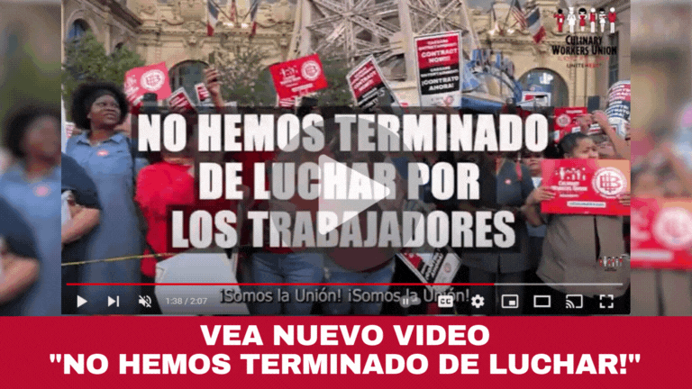 🎥 WATCH the Culinary Union's new video "WE'RE NOT DONE FIGHTING (Spanish version)" on YouTube. There, you can also watch the English version.