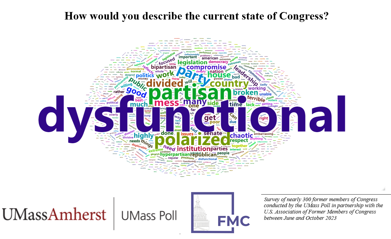 When asked to describe the current state of Congress, the word used most by Former Members was “dysfunctional”. The next three most commonly used words - partisan, polarized, and divided - showcases a seemingly wide gap between Democrats and Republicans. The fifth most popular word, “mess”, echos the same sentiment as “dysfunctional.”