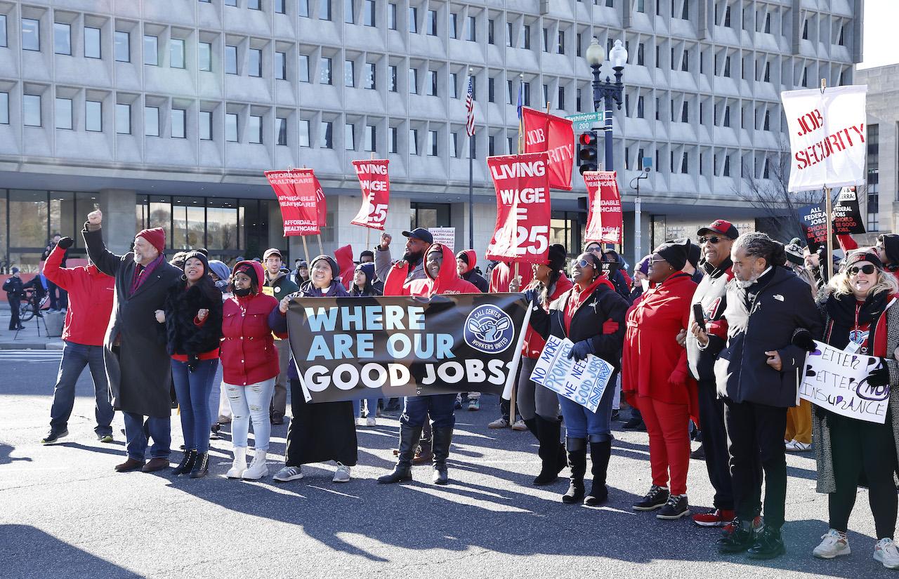 Call center workers at Maximus, the federal government’s largest call center contractor, rallied and protested outside of the Department of Health and Human Services headquarters in Washington, DC last week.