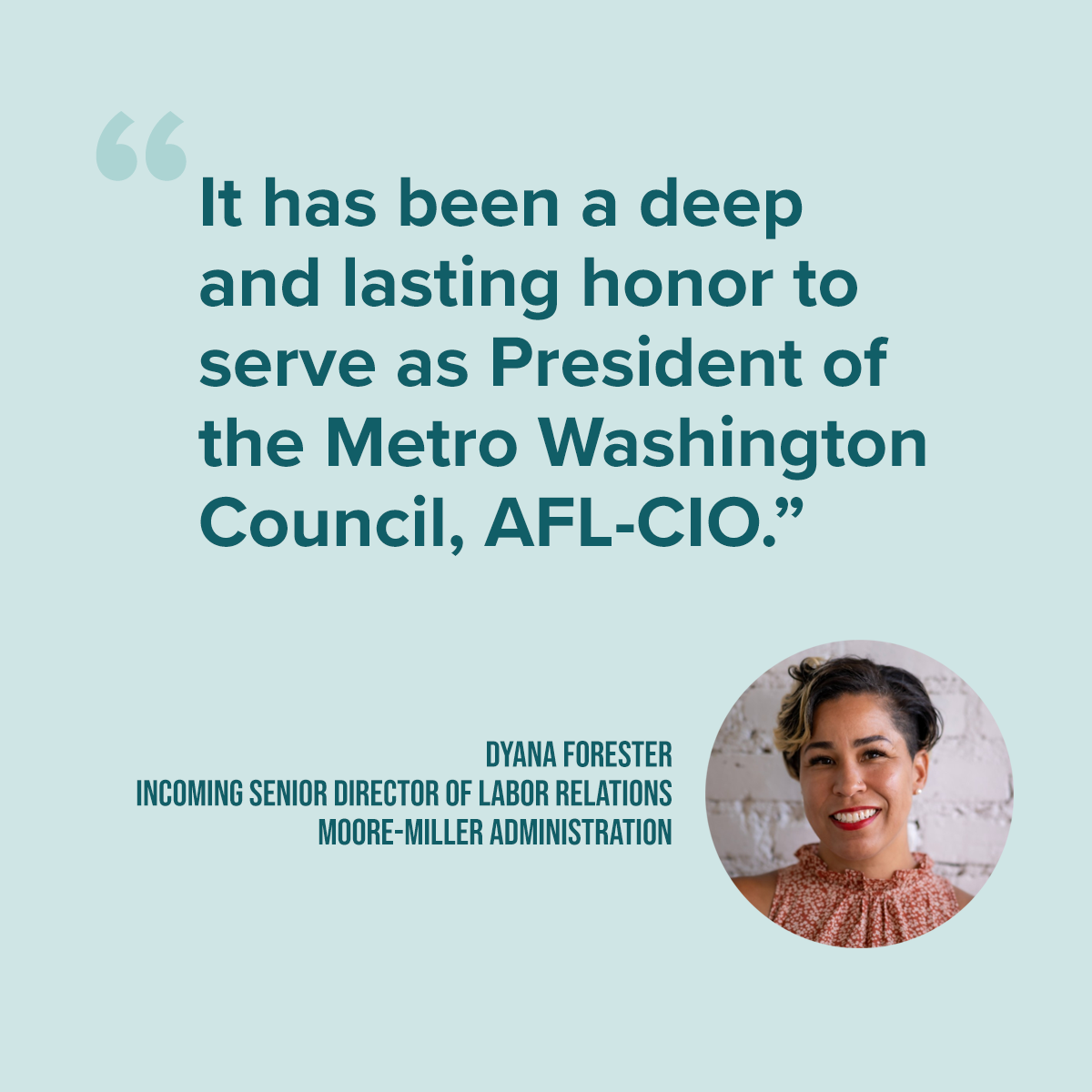 On behalf of the team at Metro Washington Council, AFL-CIO, we bid farewell to Dyana Forester, whose last day as president was yesterday. Dyana was elected in July 2020, and we are grateful to her for all her leadership over the last three and a half years.