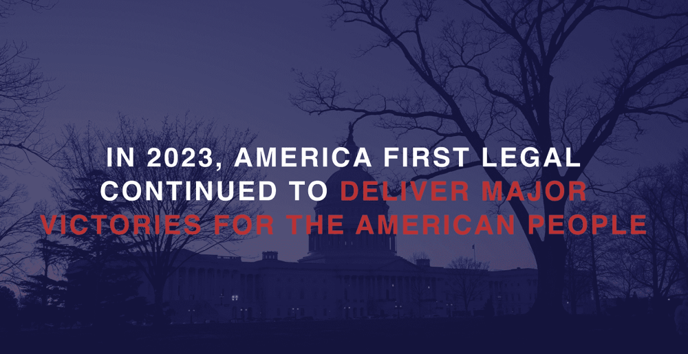 Thanks to you and our nationwide network of AFL supporters, 2023 was an amazing year for America First Legal as we grew our team and secured countless major victories against the far-left forces working to destroy our Nation and infringe on our rights.
