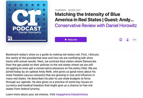 WATCH: Andy Roth and Sen. Rick Brattin With Jesse KellyThey discuss the launch of the MO Freedom CaucusFriends, As I mentioned in my last email, we officially helped launch the Missouri Freedom Caucus last Friday! To learn more about our brand new caucus and how they plan to shake up the establishment in Jefferson City, check out this interview I did on Monday with our new MOFC Chairman Sen. Rick Brattin. We went on Jesse Kelly’s show on “The First” to talk about everything they plan to do in order to give Missourians the conservative leadership they deserve. WATCH: In addition, I also made an appearance on the Conservative Review podcast with Daniel Horowitz last week where we discussed in-depth the work of the State Freedom Caucus Network and our efforts to make red states a lot more red. You can listen to that here. Keep fighting, P.S. Your help is critical in building out a network of patriots and freedom fighters throughout our nation’s state capitols and in your home state. Please consider a contribution and join us as we work to advance the cause of liberty. Invite your friends and earn rewardsIf you enjoy State Freedom Caucus Network, share it with your friends and earn rewards when they subscribe. |