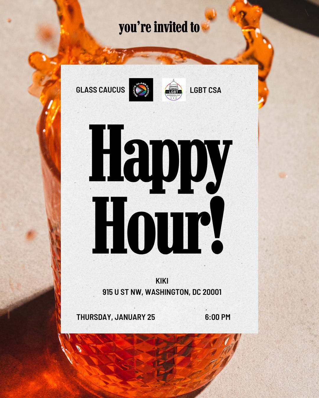 Senate GLASS Caucus Note from the Board:Happy 2024, y’all! We’re grateful for another year with you, and this year, we’re shaking things up. GLASS will now be sending out newsletters, updates, and opportunities through this platform, Substack. Our Substack will also house GLASS Caucus contact information and most information previously found on our website. If you know of a member or prospective member interested in receiving our updates, please direct them to subscribe to our Substack @senateglass. EventsNow to the fun stuff. GLASS is teaming up with the LBGT CSA to host Happy Hour at Kiki on Thursday, January 25! To ring in the new year with your LGBTQ+ friends and family, make sure to RSVP HERE. GLASS Board (Re)introductionsNew year, same us. The GLASS Board remains dedicated to ushering in new generations of LGBTQ+ U.S. Senate staffers through personal and professional development opportunities. If you or someone you know in the LGBTQ+ community is interested in connecting with our board members, please email [email protected] to connect. We have an open-door policy and welcome discussions with current and prospective members and staffers to discuss their professional and personal interests in the senate. Below you can find our names, board titles, and senate employee titles to identify the board member that is most relevant for you to connect with. from left to right, [board title (issue areas)]: Kevin Chang: Co-Chair, Legislative Assistant (Health Care, Social Security) Kevin Figueroa: Membership Co-Director, Legislative Aide (Judiciary, Narcotics, Immigration) Cameron Smith: Communications Director, Military Legislative Assistant (Defense, Foreign Policy, Space) Abi Jimenez: Events Director, Legislative Correspondent/Grants Director (Appropriations, Economic Development, Labor, Education, Arts and Museums, Puerto Rico) Jimmy Draper: NA Paul Hurton: Co-Chair, Executive Assistant (Sergeant at Arms) Laakea Stone: Membership Co-Director, Legislative Aide and Appropriations Manager (Water, Energy, Environment, Native Issues, Appropriations) MembershipNo pressing updates, but please be on the lookout for an upcoming email with membership renewal in the coming weeks! Please email any questions or concerns to the GLASS Board at [email protected] |