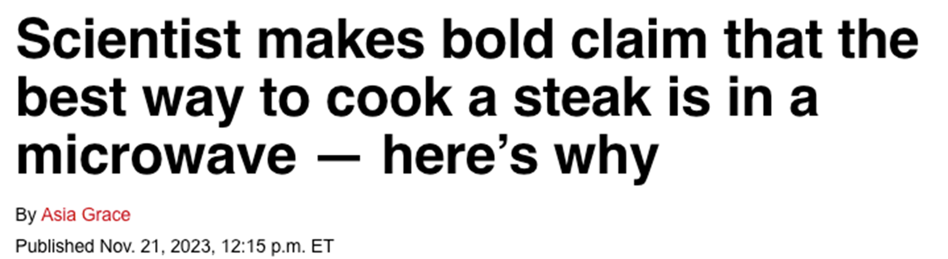 The New York Post recently published an article saying scientists claim that steaks are best when cooked in a microwave.